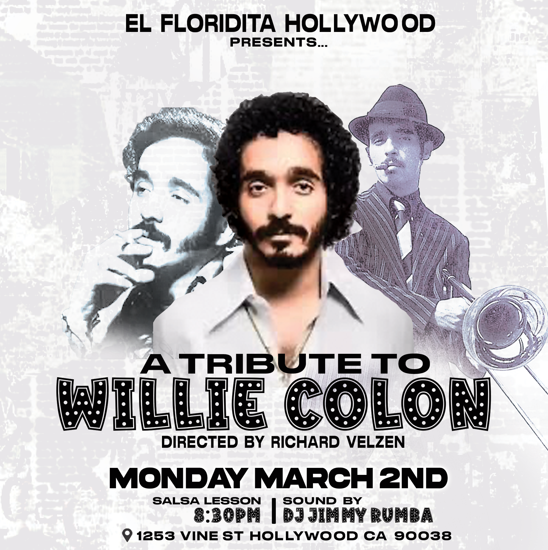 Monday Night Salsa Series Presents a tribute to the late great Willie Colon directed by trombone maestro , Richard Velzen. Special appearances by LA’s top musicians at 9:30pm- Dance Lesson by DJ Jimmy Rumba at 8:30pm- 15 cover without dinner reservations